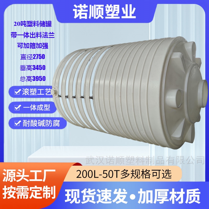 20吨家用塑料水塔通常采用线性低密度聚乙烯(LLDPE)为原料,通过滚塑工艺一体成型,具有耐腐蚀、密封性好、寿命长、重量轻、易安装等优势,适合家庭储水、农业灌溉、雨水收集等场景使用。